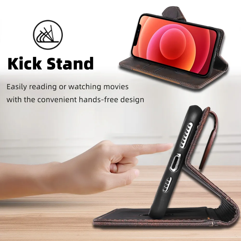 Made from high-quality leather, this case protects your phone from scratches, bumps, and minor drops while offering a sleek, sophisticated look. The integrated card slots allow you to carry essential cards, and the flip bracket doubles as a stand for watching videos or video calls. Lightweight and slim, it maintains comfort while offering full functionality.