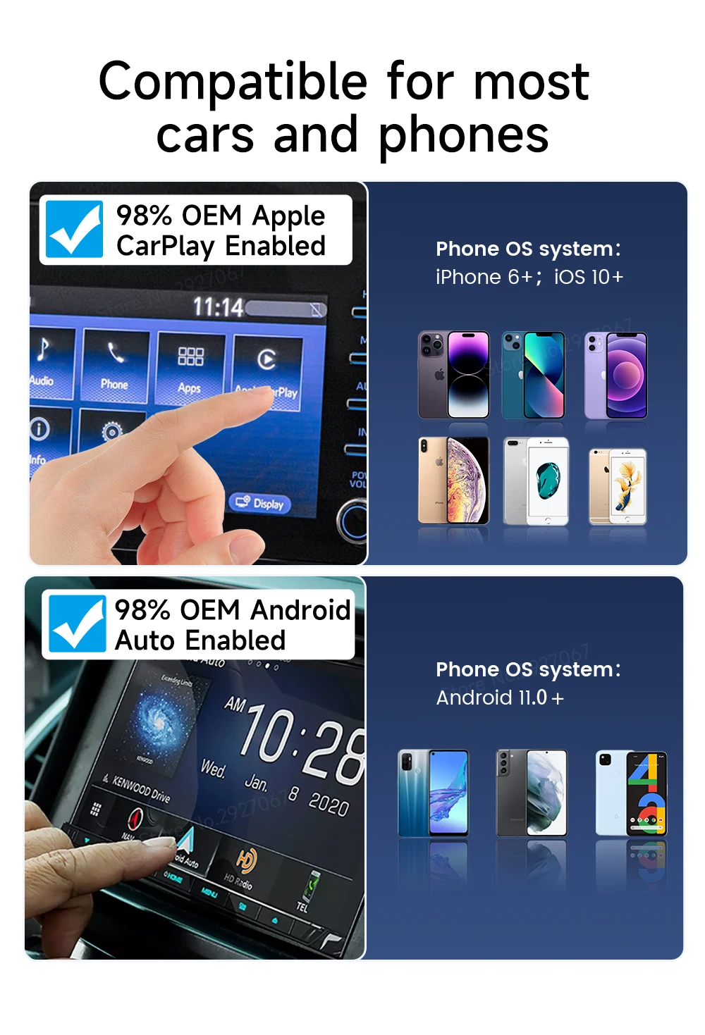 Dual-System Support: Both adapters support wireless Apple CarPlay and Android Auto, catering to users of both platforms.