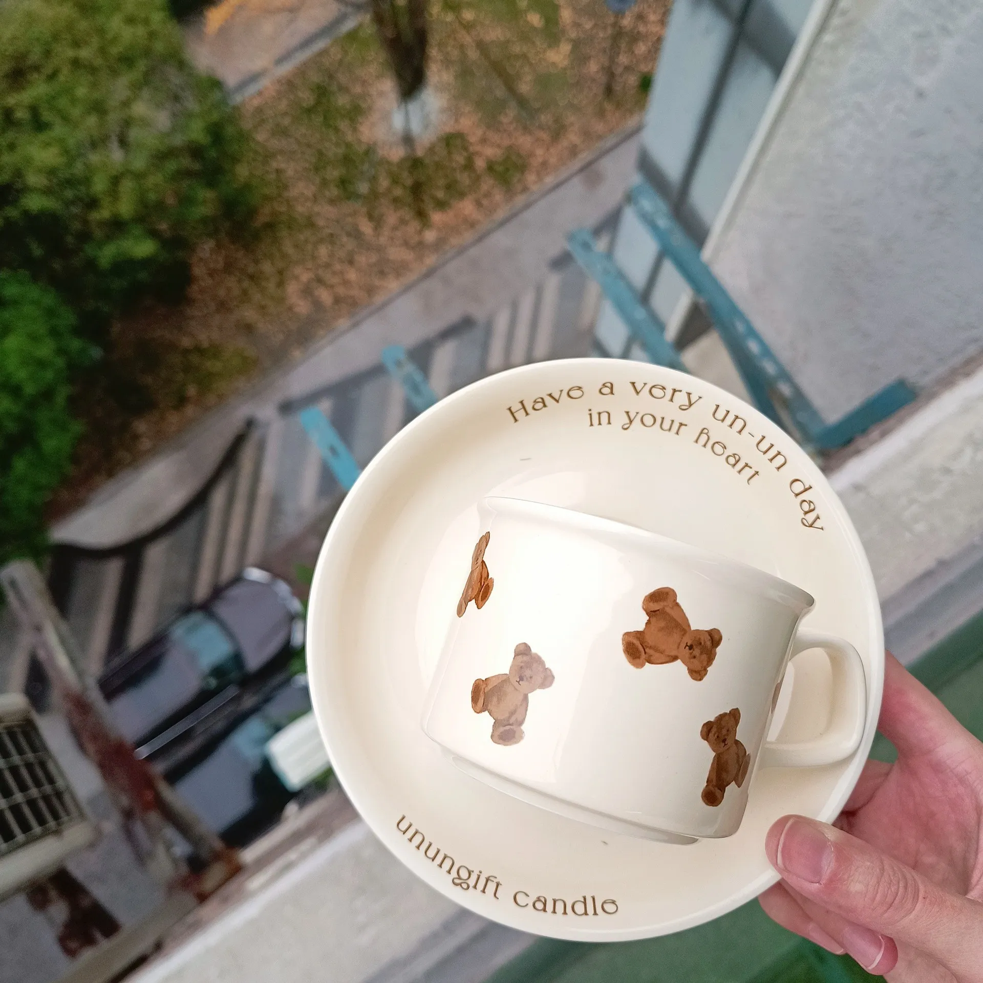 Cartoon Bear English Alphabet Coffee Cup Saucer Set Cup Ceramic Cutlery