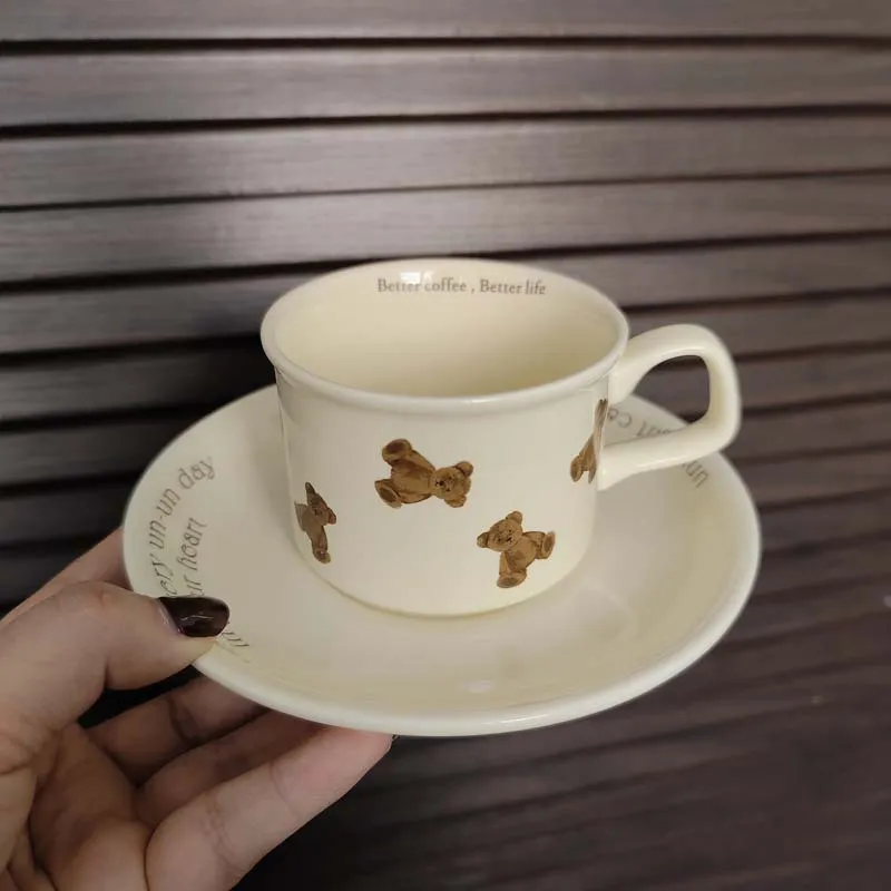 Cartoon Bear English Alphabet Coffee Cup Saucer Set – Fun, Stylish, and Functional Drinkware for Your Daily Coffee