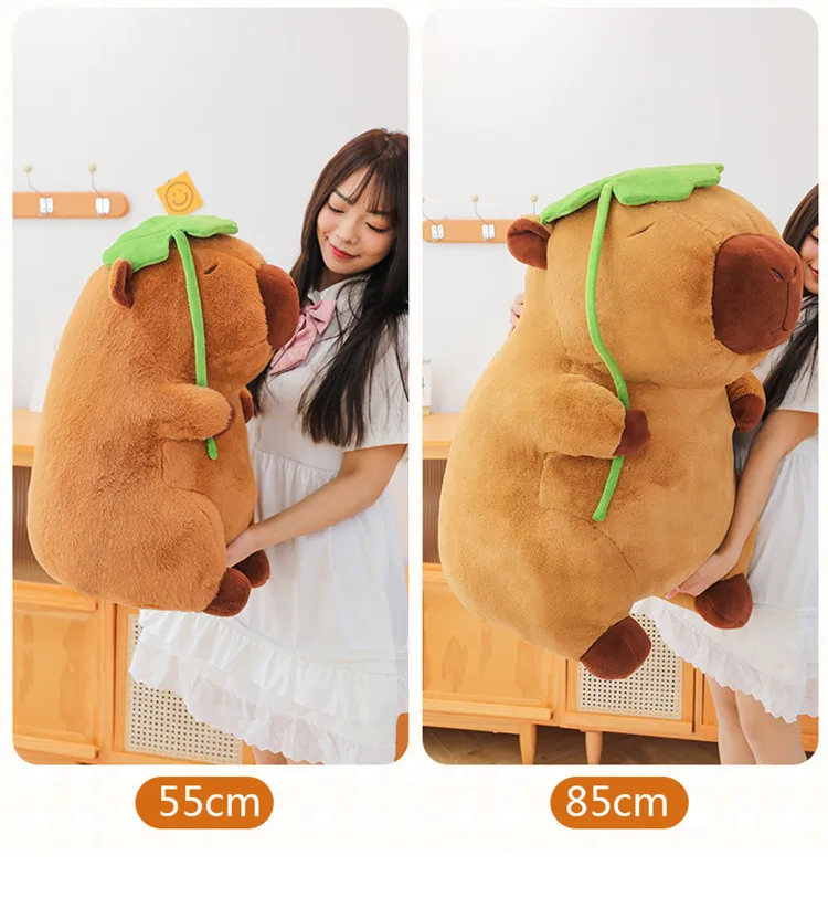 Made with premium, ultra-soft materials, the capybara plush offers a soothing and comforting experience, whether you're using it as a pillow, a decorative piece, or a cuddly companion. Its large size and gentle design make it perfect for napping, playing, or simply adding a unique touch to any room. The playful lotus leaf detail adds an extra element of fun, making this plush toy not only a great gift but a fun addition to any collection.