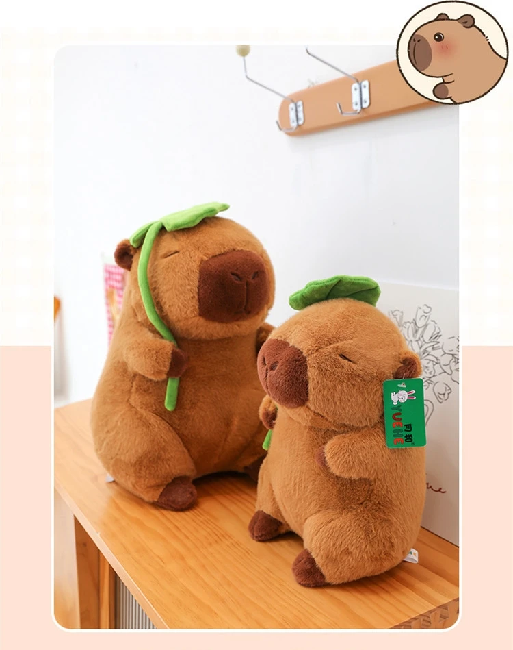 features a charming capybara, one of the most beloved animals in the world of plushies, complete with a cartoon lotus leaf on its back. This