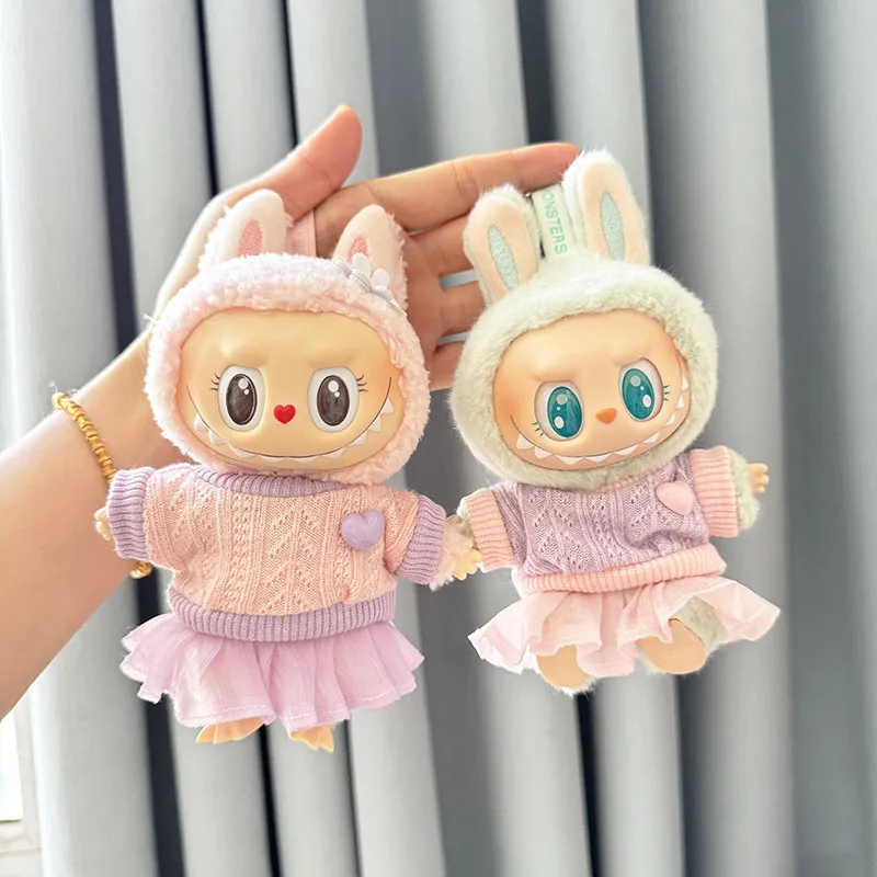 The Cartoon Plush Toy Doll Clothes Love Sweater Yarn Dress is a fun and stylish accessory that makes plush toys more interactive, adorable, and collectible.