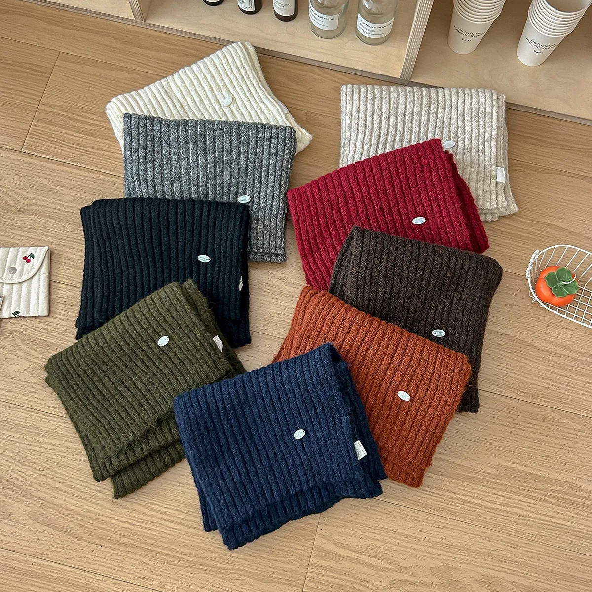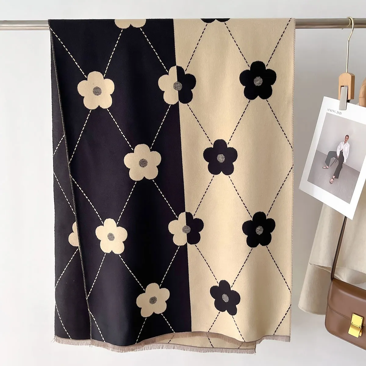 Cashmere Color Matching Line Warm Scarf Flower