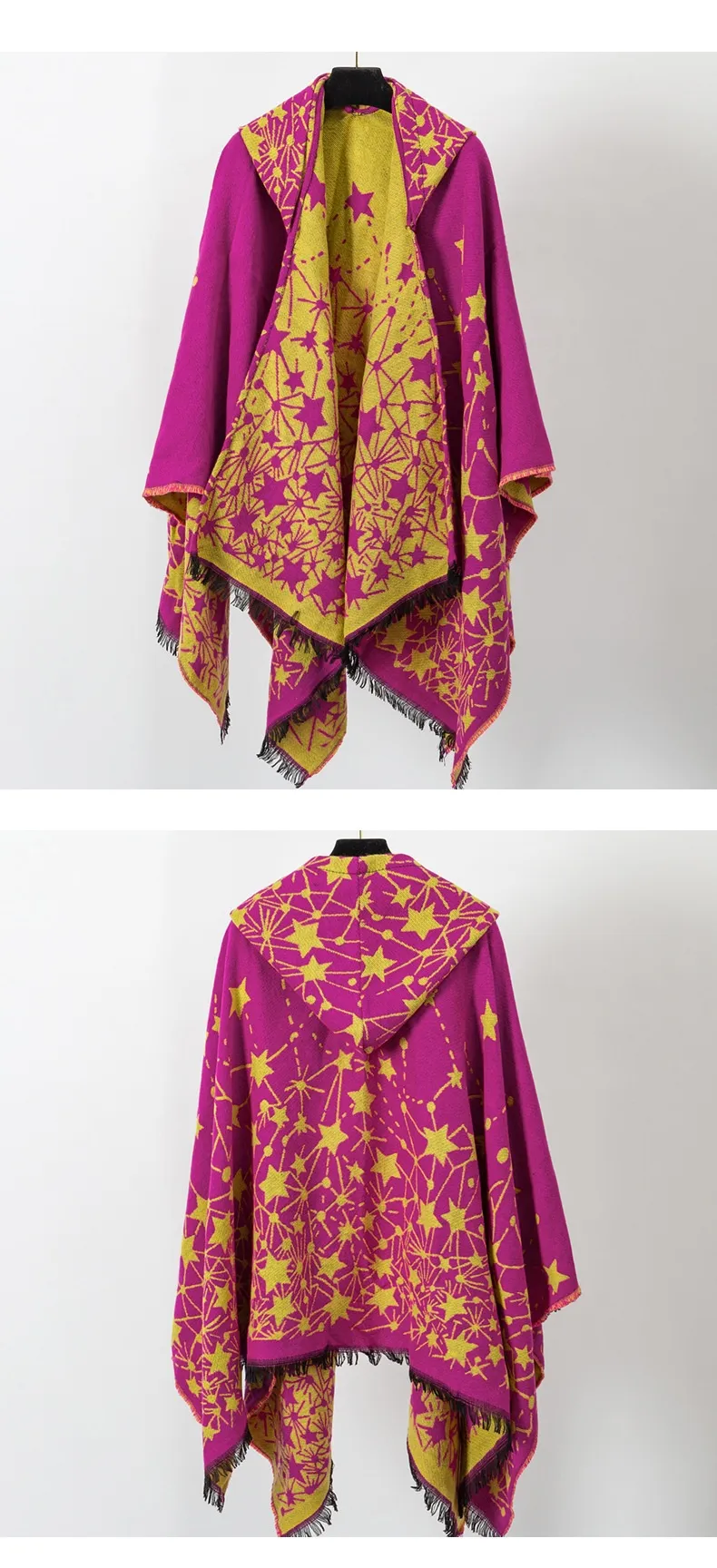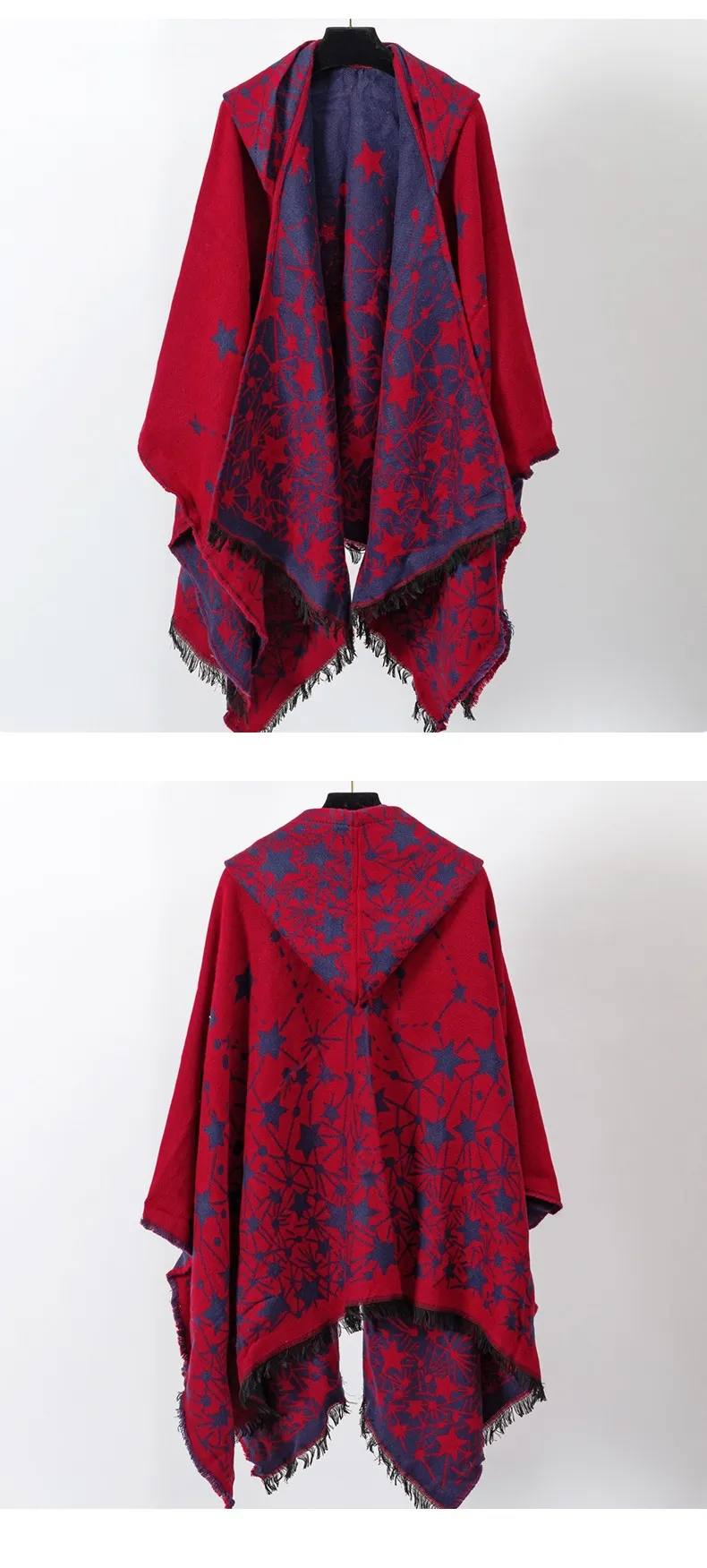 Cashmere-like Knitted Geometric Outer Scarf Shawl