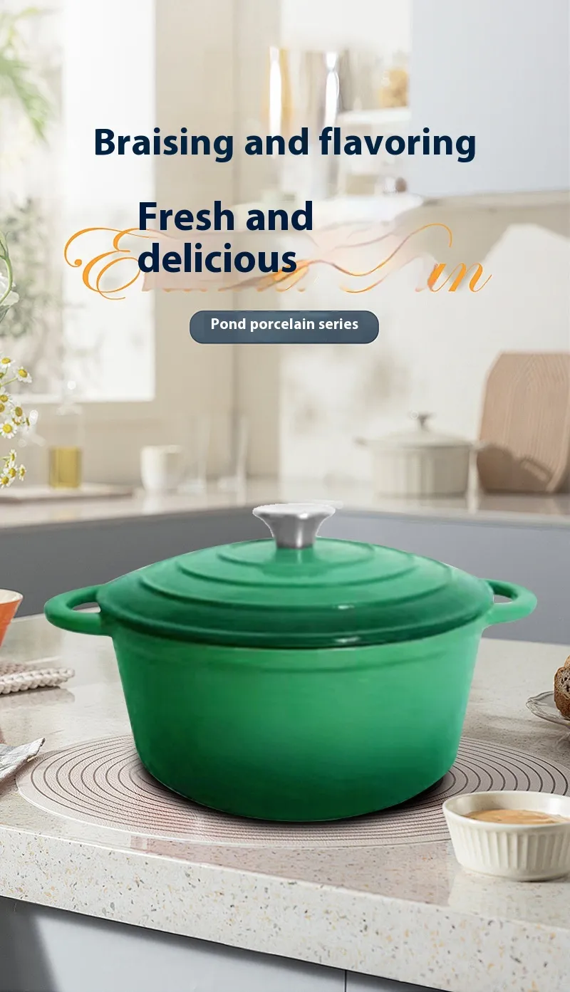 Cast-iron cookware is engineered from a single solid iron body that absorbs and retains heat exceptionally well. Unlike thinner metals that warp or develop hot spots, cast iron distributes heat steadily across its surface and holds temperature over time — ideal for slow cooking, searing, frying, baking, and stewing.
