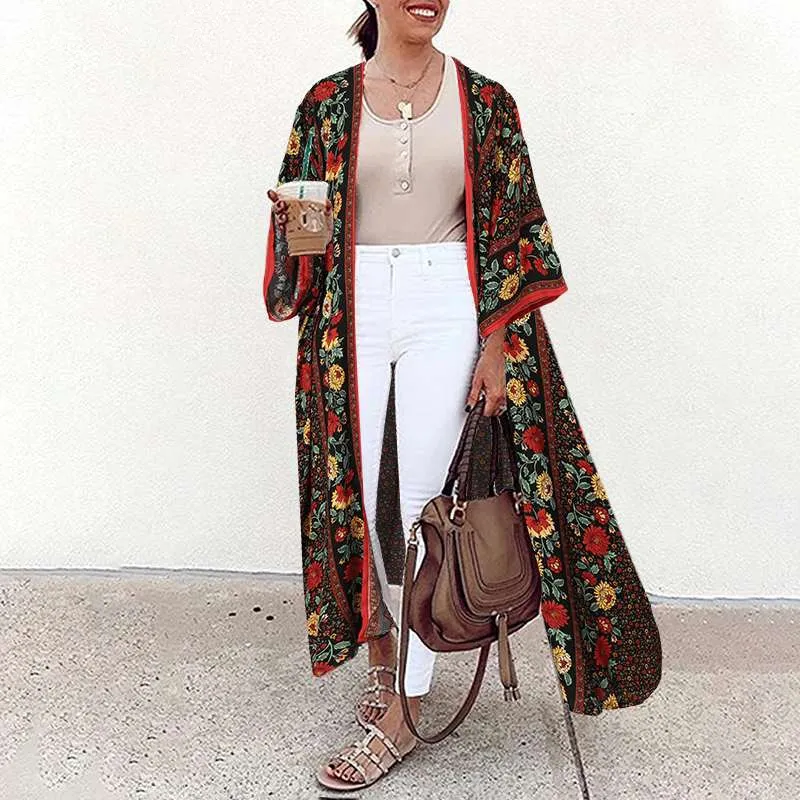 Versatile Style: Available in various colors, patterns, and prints, the kimono jacket can easily be paired with jeans,