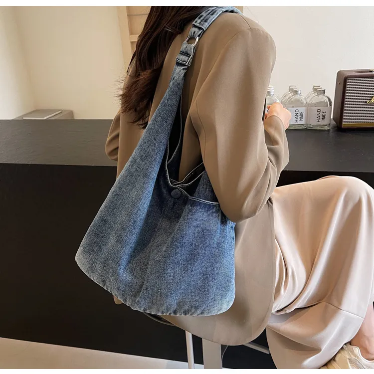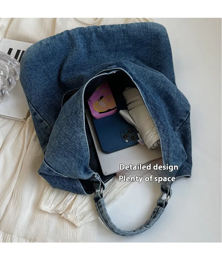 Ideal for New Zealand women who want a practical yet stylish bag, this large capacity denim shoulder tote is the perfect everyday accessory.