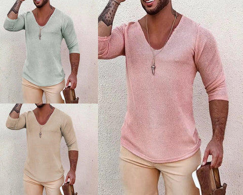 Upgrade your wardrobe with our Men's Casual Long-Sleeved Thin V-Neck Knitwear, pairing it with your favorite jeans or casual pants for a timeless and effortless look.