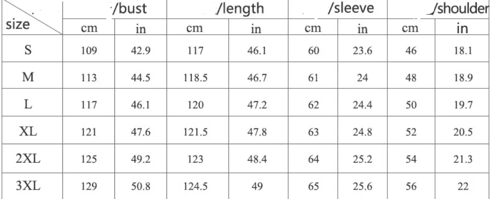 Size: S/M/L/XL/XXL/3XL