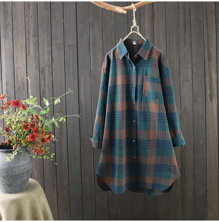 Casual Plaid Shirt Women's Mid-length Loose Korean Style