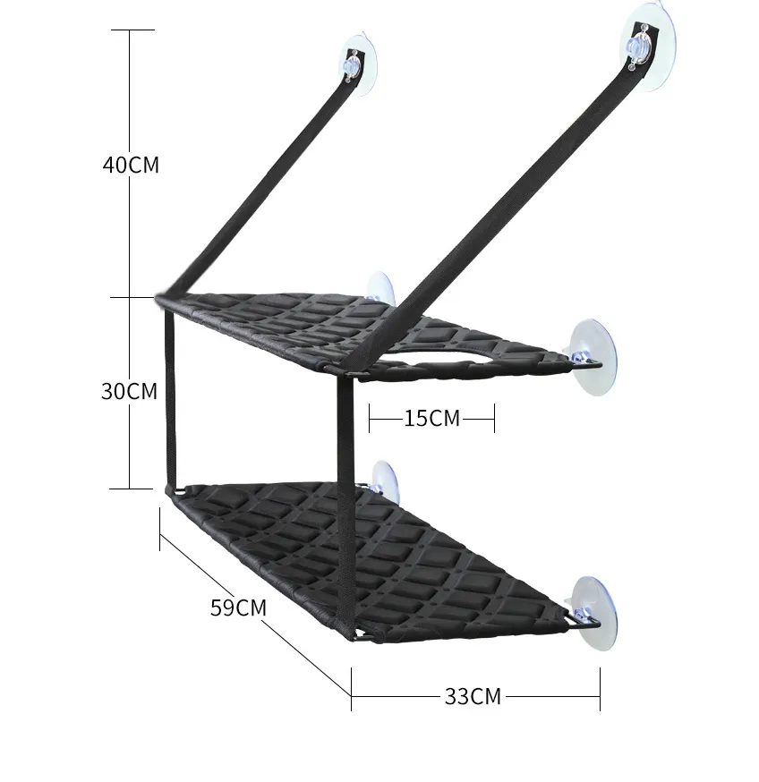 DURABLE - cat hammock is equipped with an extra-strong and large designed 3.5 in. suction cup. Easy to mount and can hold up to 60 lbs. of