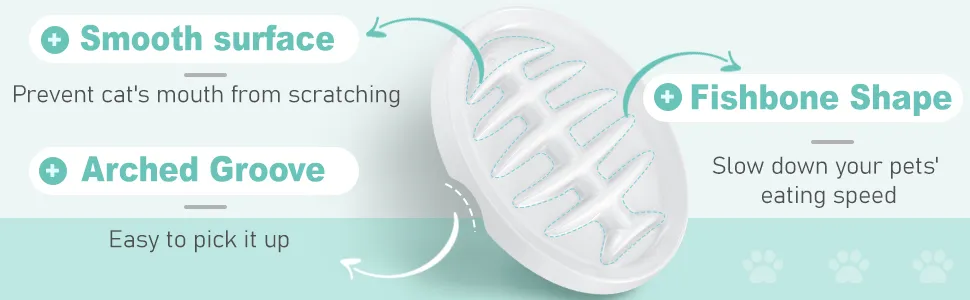 Slow Feeding Design: Designed with maze-like patterns or ridges that make your cat work for their food, slowing down their