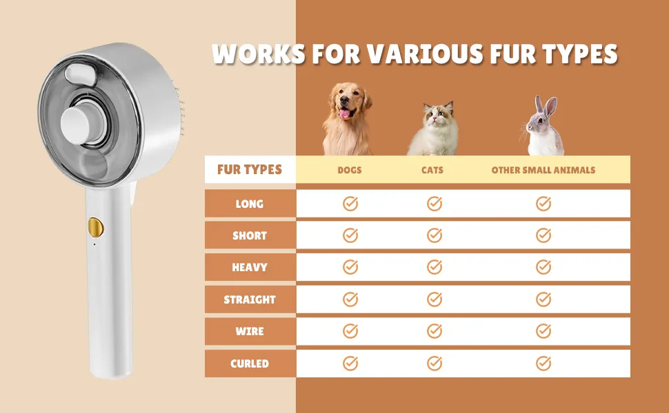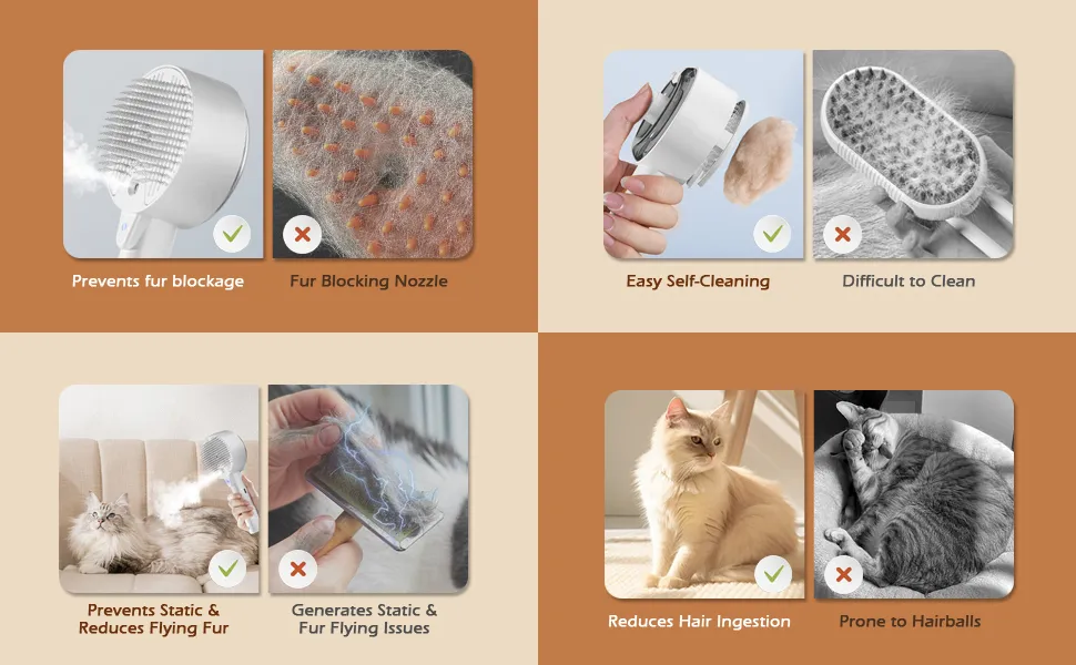 MaterialPlasticProduct AttributesOrdinary, Battery ContainsPackage Size205*83*60(1mm)【4-in-1 Cat Steam Brush for Shedding, Self-Cleaning, Grooming & Massage】This multifunctional steam brush for cats efficiently removes loose fur and tangles while providing a relaxing massage and grooming experience. The steam function helps control fur from flying and reduces static, leaving your pet’s coat smooth and clean. Note: The cloud care cat brush makes mist, not heated steam; for a warm mist, add warm water. Perfect cat brushes for indoor cats or a dog brush for shedding.