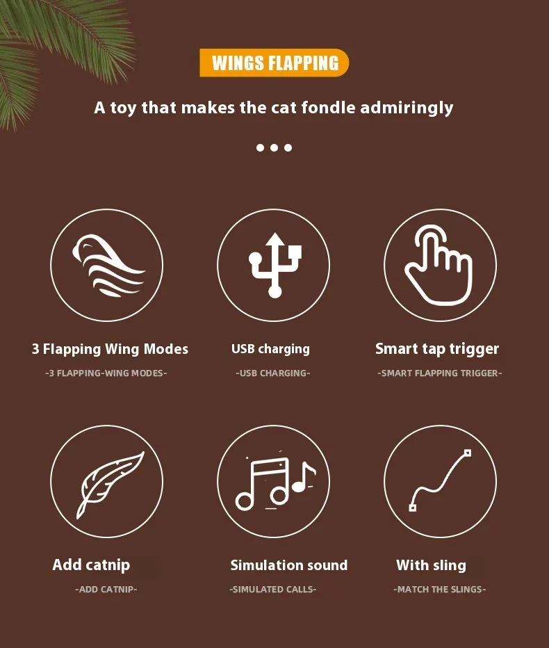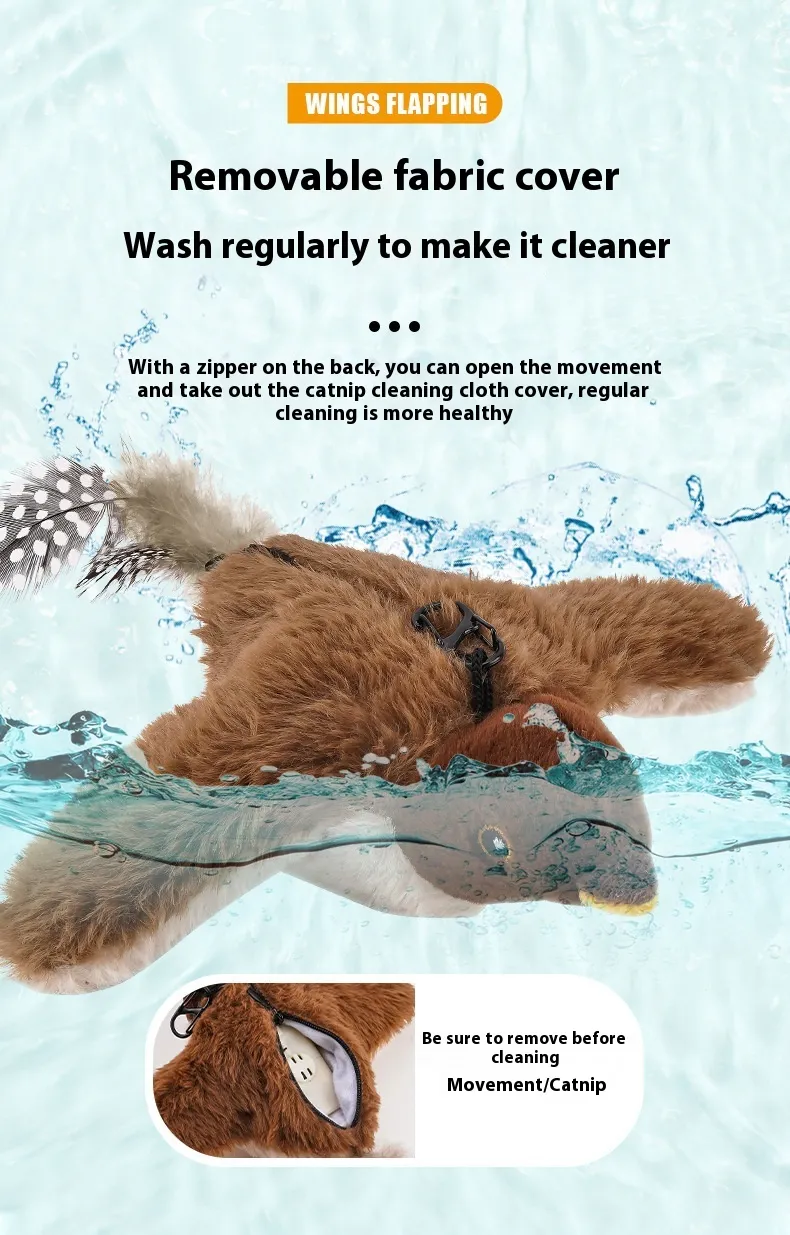 Realistic Bird Simulation: Flaps its wings and moves unpredictably to mimic real bird flight, keeping cats