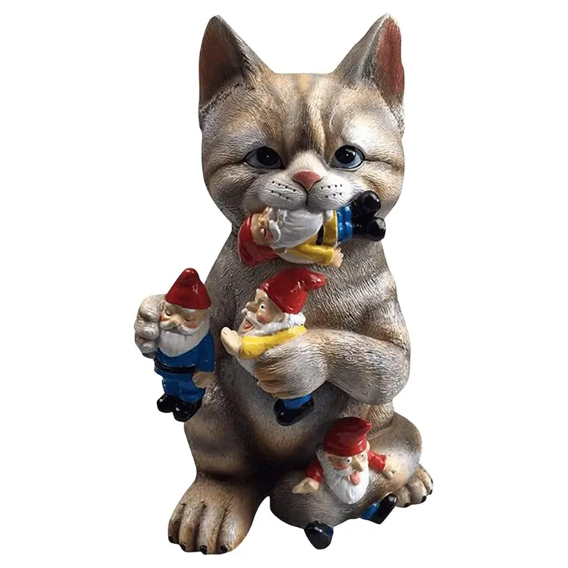 Cats Eat Dwarfs Statue Garden Ornament Art Resin Craft Landscaping Yard Sculptures Decoration For Home Garden