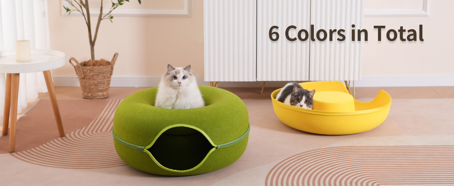 - Sturdy, Eco-conscious & Cat-friendly: The Peekaboo Cat Cave is made with durable, non-toxic, and odor-resistant materials, ensuring it maintains its shape and withstands regular use. Its cat tunnel bed, constructed from selected wear-resistant felt material, prevents fluffy ball formation and allows for safe scratching and rubbing. With all-season versatility, the Peekaboo Cat Cave provides a cozy and comfortable donut bed and tunnel, offering year-round enjoyment for your feline companion.