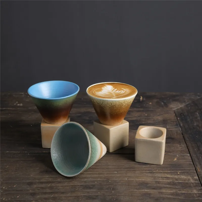 Color: funnel coffee cup-Kiln baked blue 200ml, funnel coffee cup-coffee color 200ml, funnel coffee cup-gradient gray 200ml, funnel coffee