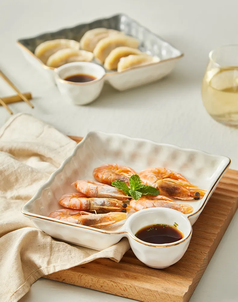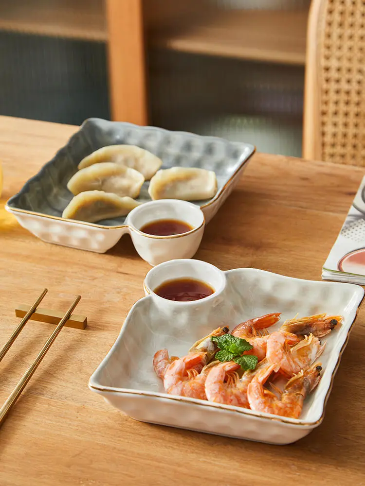 Ceramic Dumpling Tray Vinegar Dish Household Split Plate