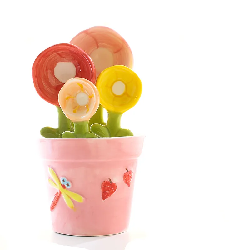 Specifications: Four flower spoons with blue base and four flower spoons with pink base