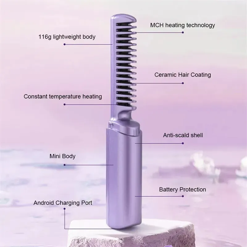 1. Mini Body, Portable Tool: With its lightweight and compact design, our cordless hair straightener brush is a portable tool that doesn't take up much space. Keep your hair neat and styled wherever you go. Easily fit it into your bag and transform into an elegant beauty.