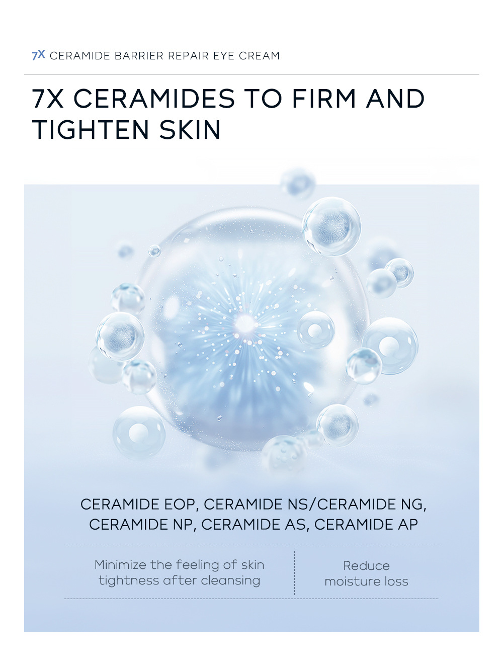 Ceramides play a crucial role in maintaining the skin's barrier function. By replenishing these essential lipids, the eye cream helps to strengthen the skin barrier, protecting the delicate eye area from environmental stressors and preventing moisture loss.