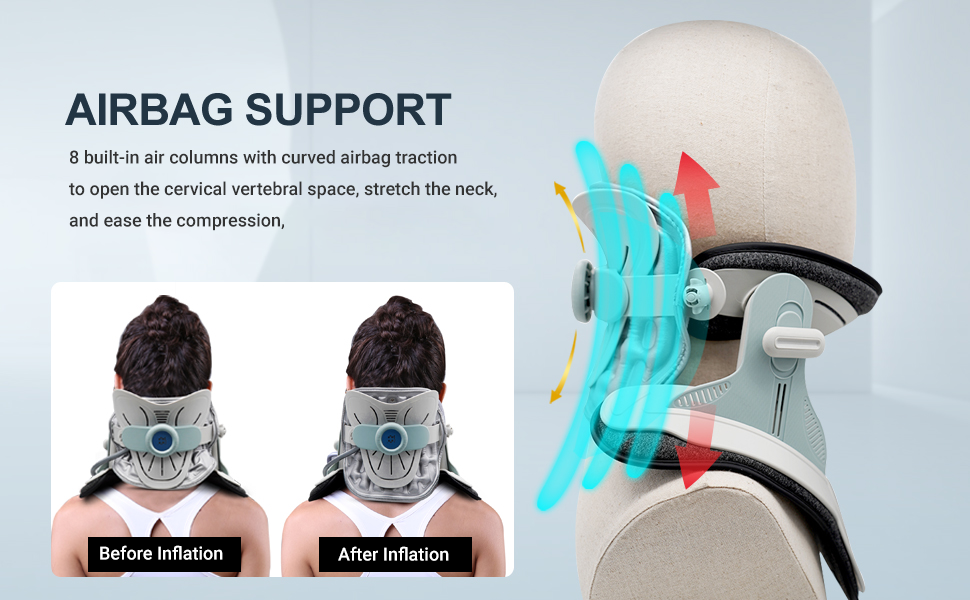 and traction. The air pressure release valve prevents overinflation, ensuring a safe and controlled therapy experience. The collar