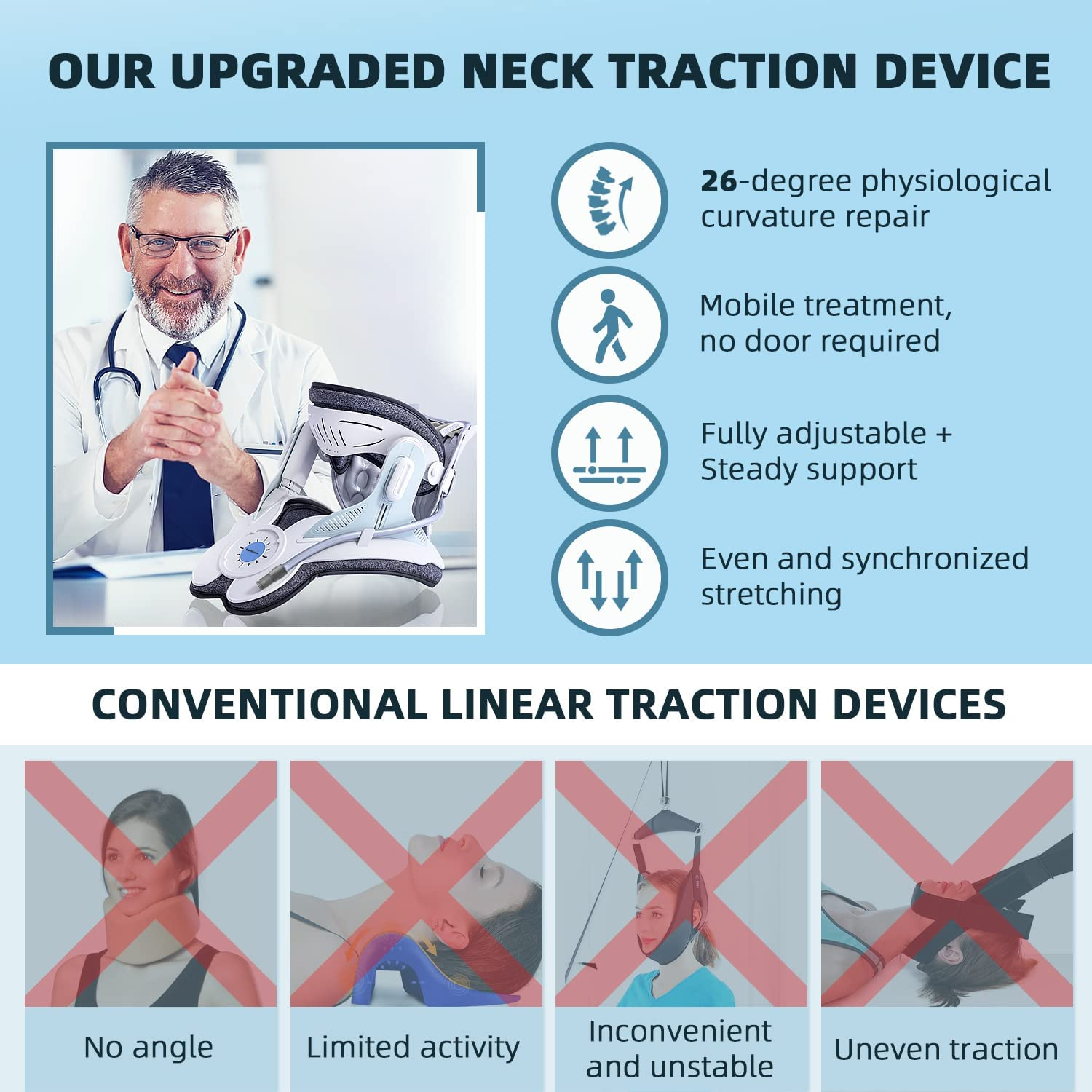 - ✅ COMFORT & MOBILITY: Crafted with breathable materials, our cervical traction device provides comfort for chronic neck pain and cervical strain relief, enhancing mobility.