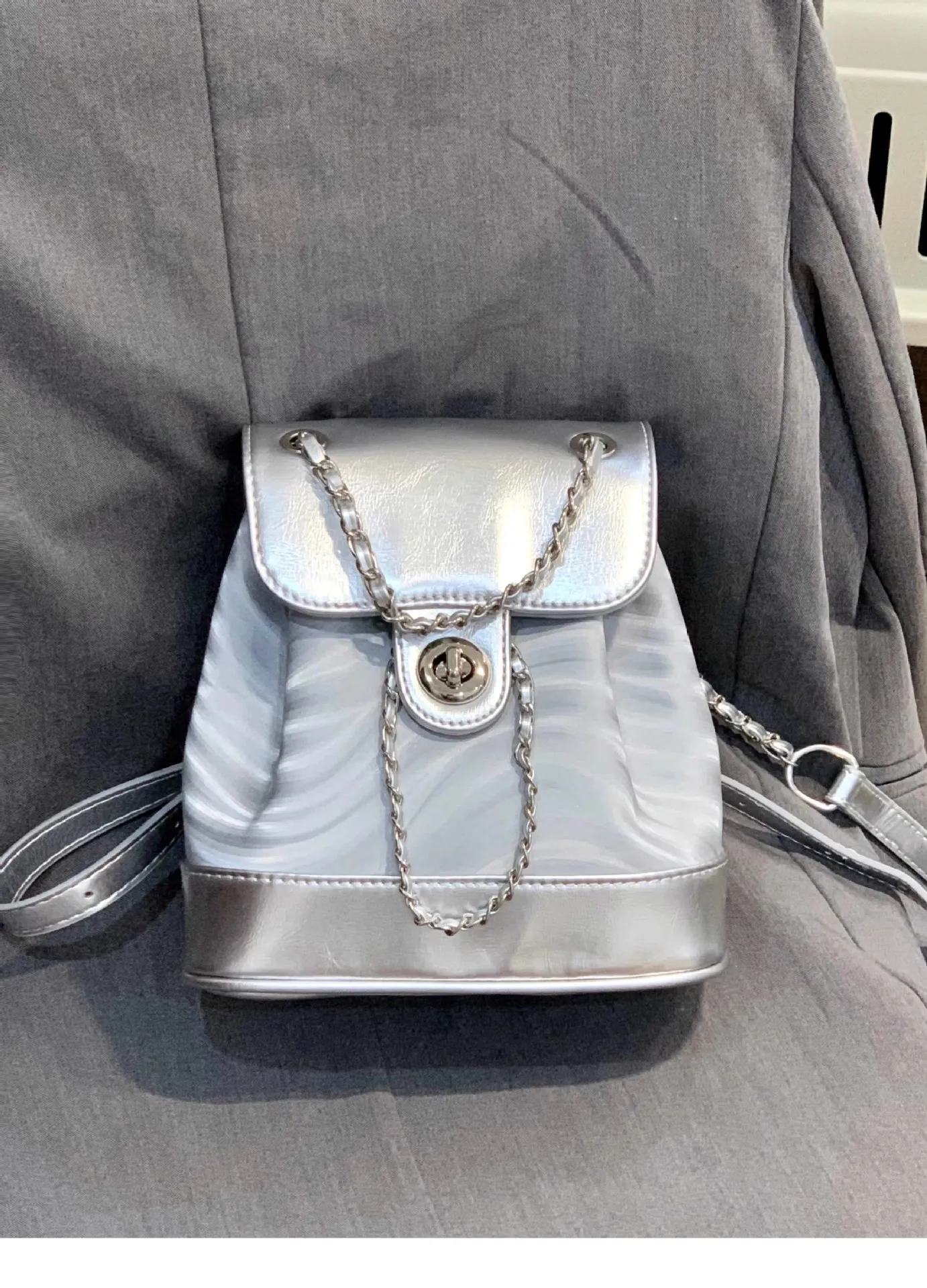 Chain Backpack Women's Water Ripple Fashion Travel Backpack Bags
