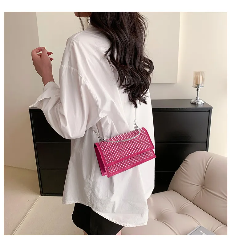 The elegant chain strap adds a touch of glamour, making the bag a standout accessory that enhances any outfit.