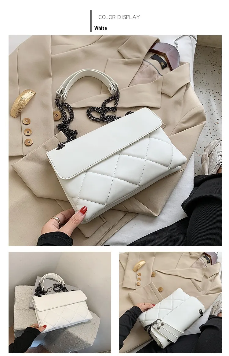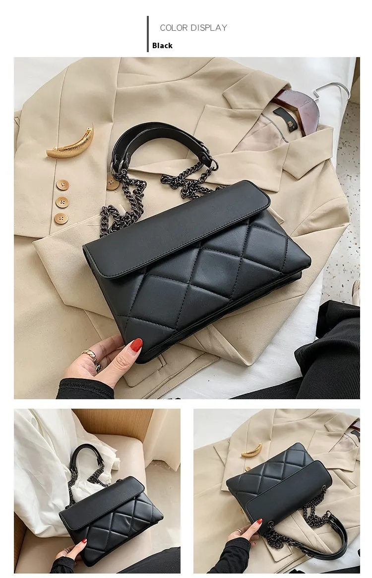 The Chain Underarm Simple All-match New Popular Messenger Bag is the epitome of sophisticated minimalism. Designed with a stylish rhombus pattern and chain detailing, this bag effortlessly blends elegance with functionality. Whether you're heading to the office, enjoying a night out, or running errands, this bag’s simple yet chic design makes it the perfect accessory for any occasion. Its versatile style complements a wide range of outfits, from casual to formal, making it a must-have for every fashion-forward woman.