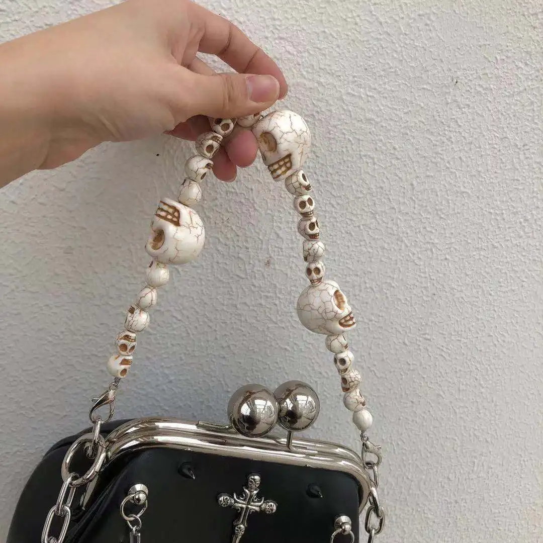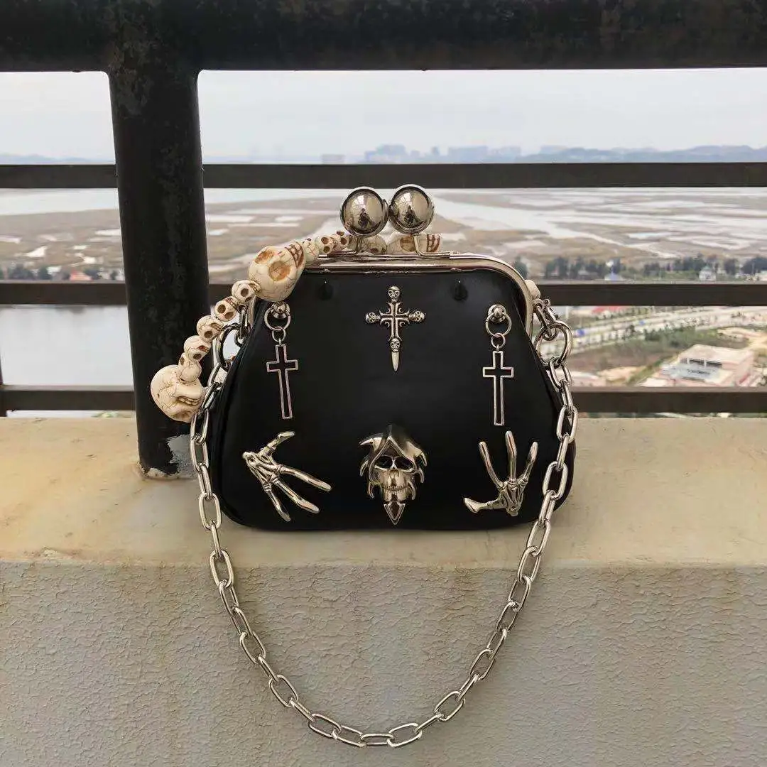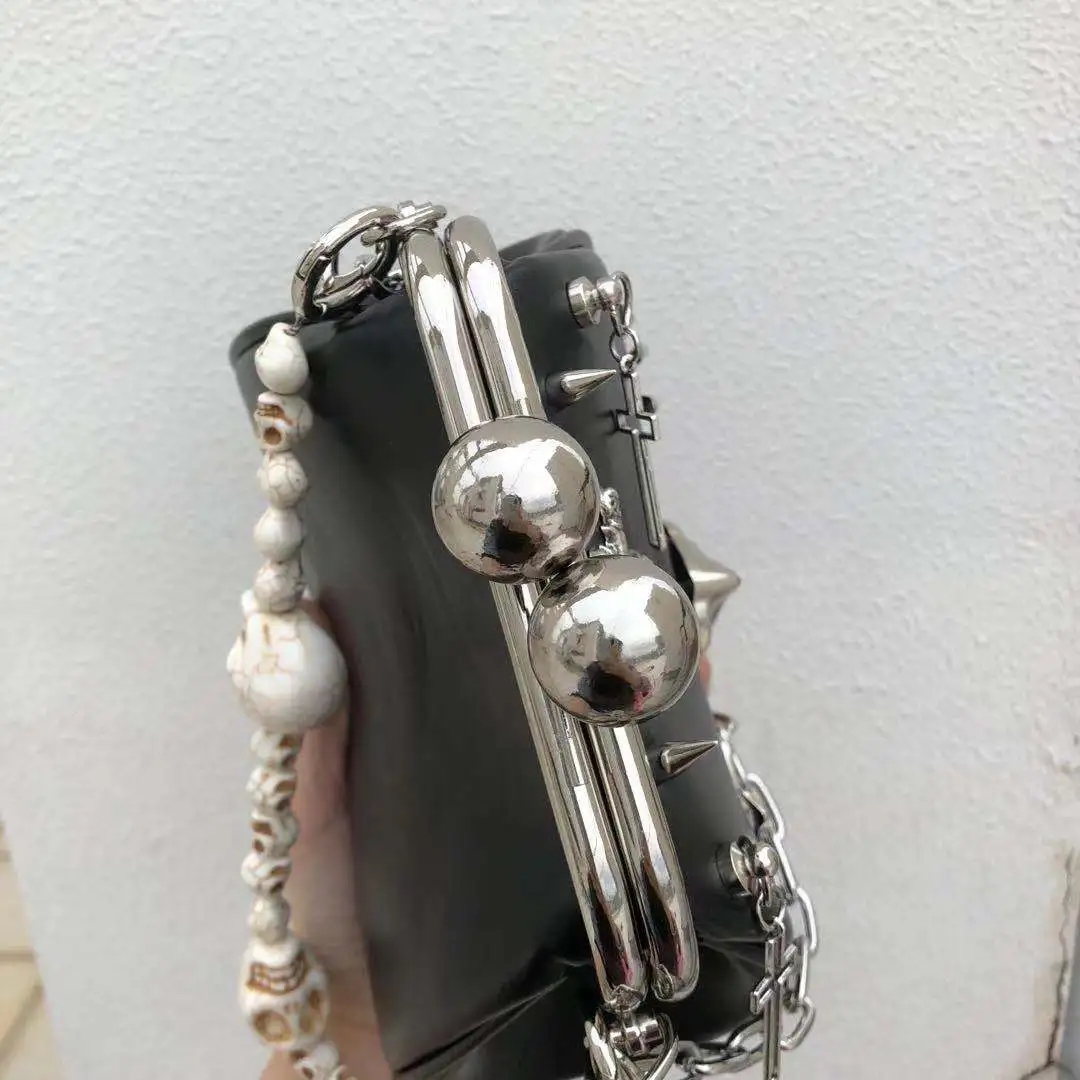 for fashion-forward individuals who embrace a punk-inspired lifestyle, this bag combines edgy metal chain detailing, durable construction,