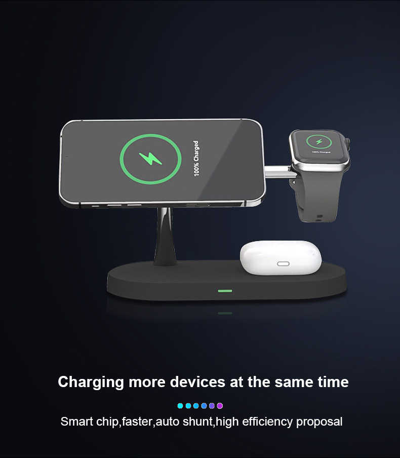 1.ã€5 in 1 Magnetic Wireless Charger】- The Magnetic wireless charger can charge iPhone, apple watch, and AirPods.