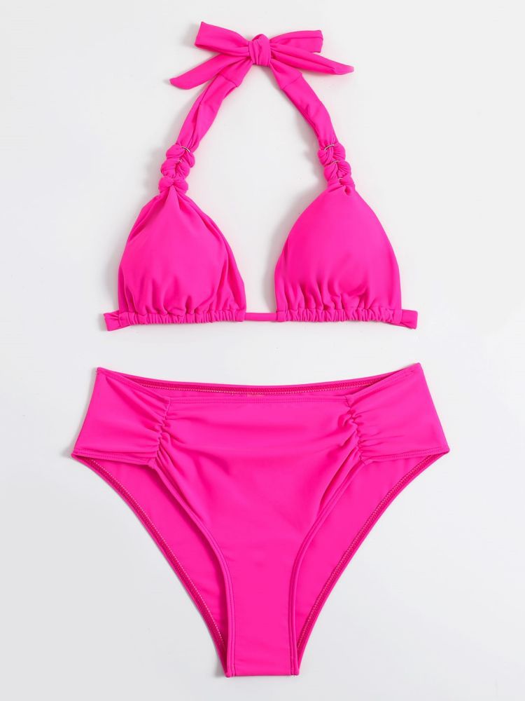 Available in a range of vibrant colors, including a striking hot pink and a sleek black, this bikini set caters to various tastes and