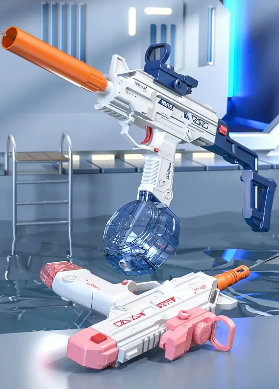 Get ready for action-packed water fights with the Children's Automatic UZI Electric Backpack Water Submachine Gun, the ultimate summer toy for outdoor adventures. This high-powered water gun is designed to resemble a realistic UZI submachine gun, providing an exciting and dynamic water fight experience for kids. Equipped with an electric pump system, this water gun delivers continuous streams of water, making it perfect for dominating pool battles, beach fun, or backyard water fights.