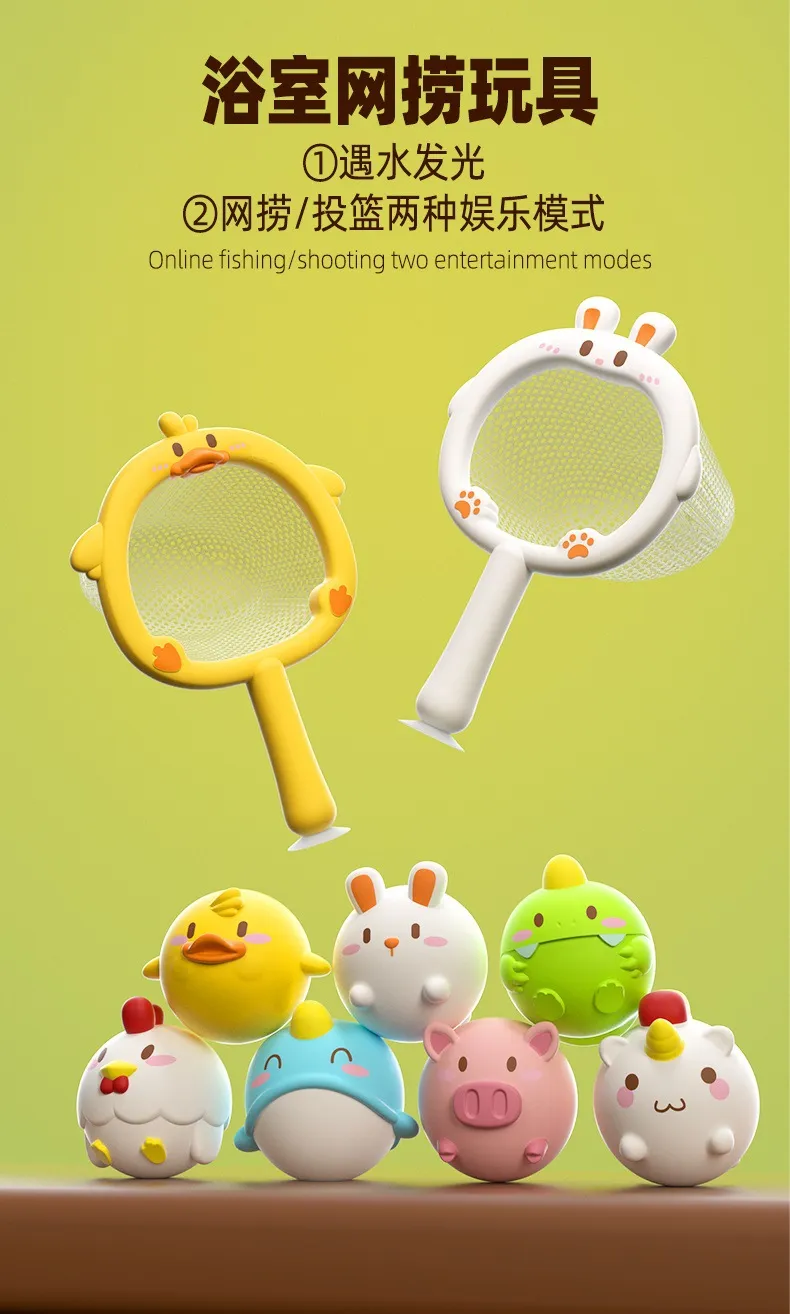Children's Bathroom Play Toys Cute Cartoon Animal Ball Baby Bathing In Summer Bathing Parent-child Interaction Safety Environmental Protection Soft Glue Glow Ball