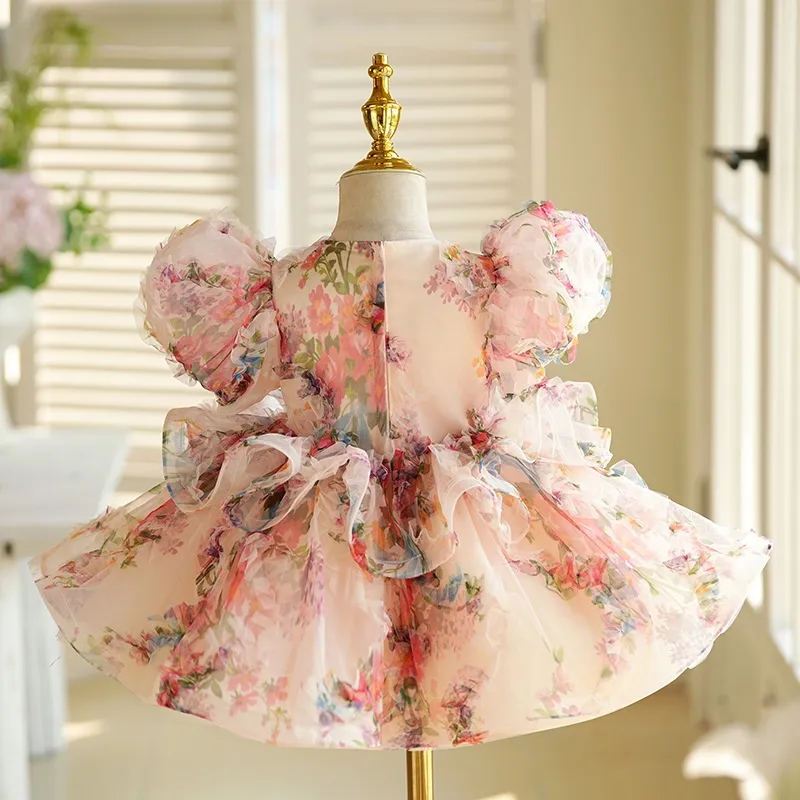 Designed with convenience in mind, this dress features a simple pull-on design that allows for quick dressing. The stretchy waistband ensures a secure yet comfortable fit, while the flowy skirt offers plenty of room for movement, making it ideal for running, playing, and twirling. The versatile floral print and bubble sleeves make it easy to style with different accessories, such as a cute headband, sandals, or a jacket for cooler days.