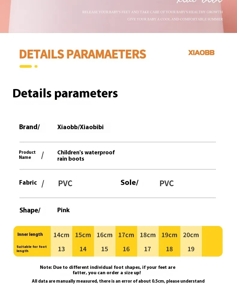 Made from high-quality waterproof materials, these rain boots are designed to keep your child's feet dry in the wettest conditions. Whether it's a light drizzle or a heavy downpour, these boots provide full protection against water, ensuring that your child can splash in puddles without worrying about soggy socks. The seamless construction and durable materials make these boots both waterproof and long-lasting, perfect for those rainy days ahead.