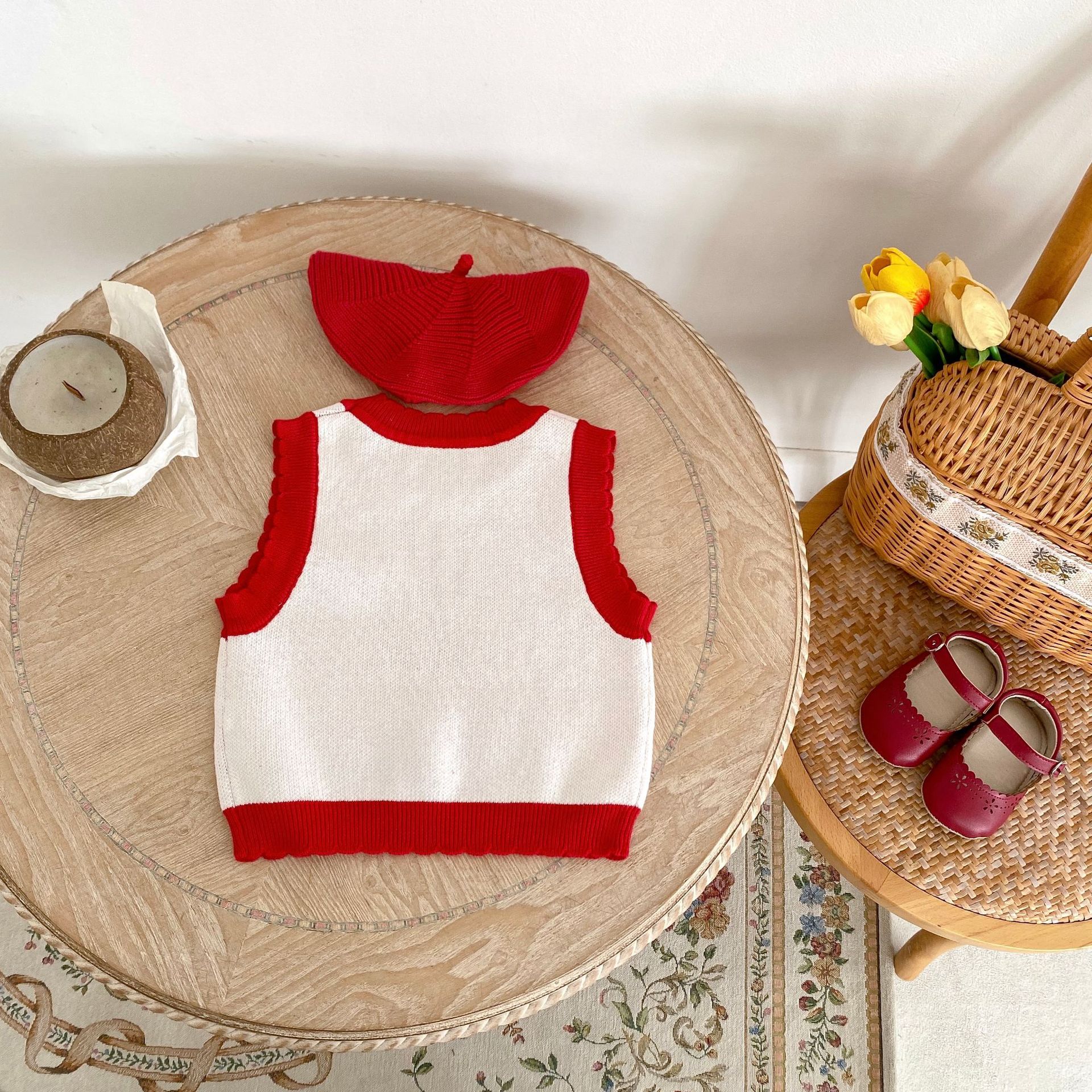 Made from soft, breathable cotton, this vest-style top is designed to keep your child comfortable throughout the day. The knitted fabric provides warmth and flexibility, making it perfect for layering during colder months or wearing alone during the warmer seasons.