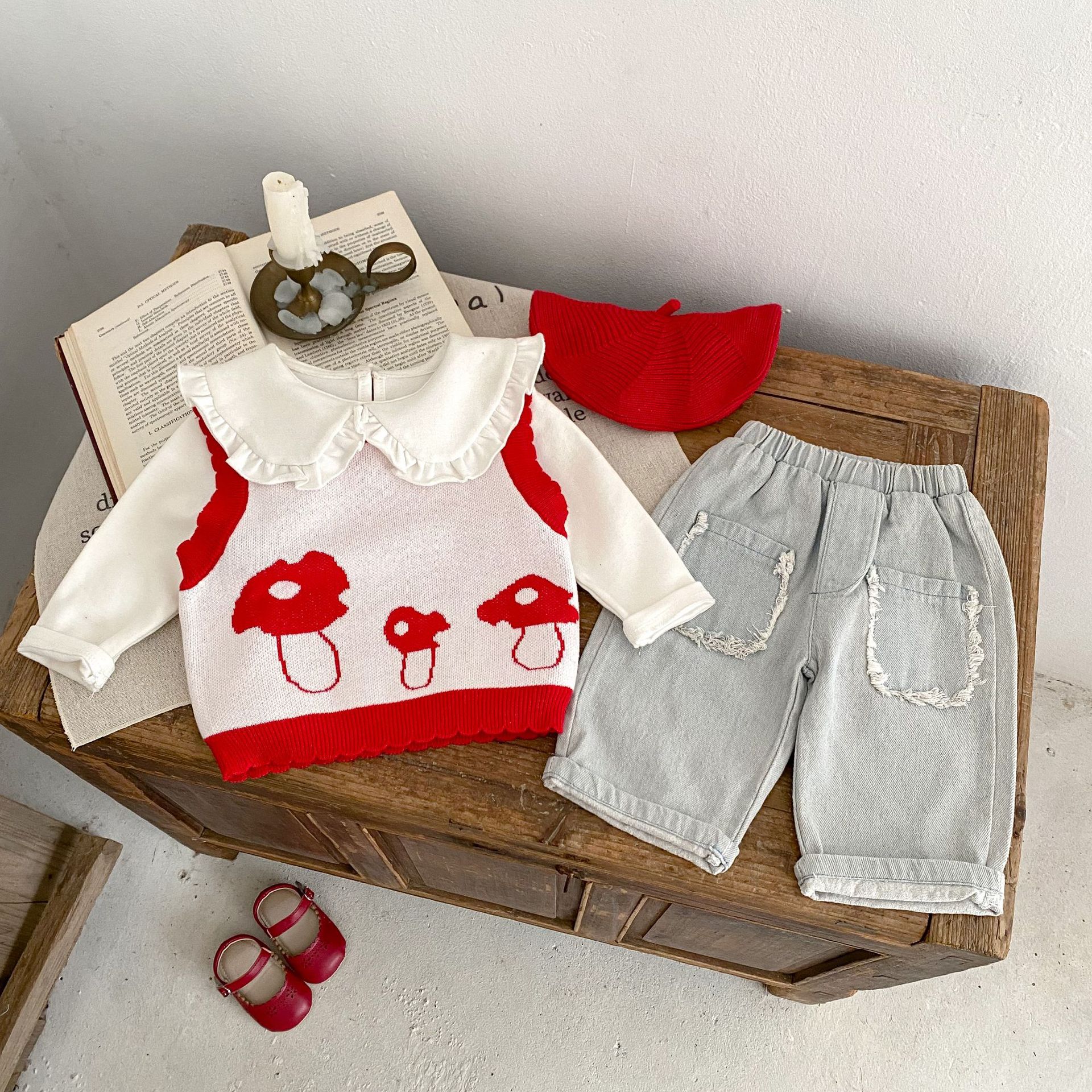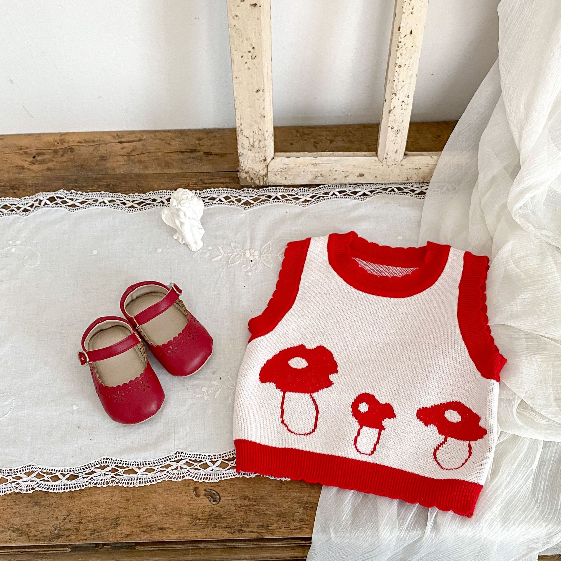Children's Cotton Knitted Vest Mushroom Jacquard Top