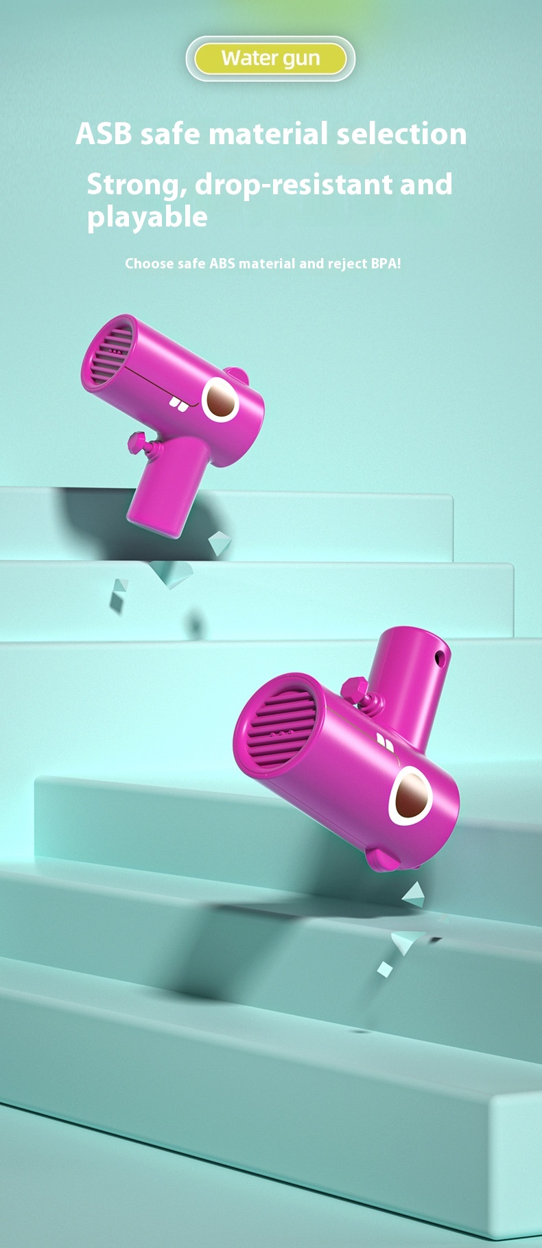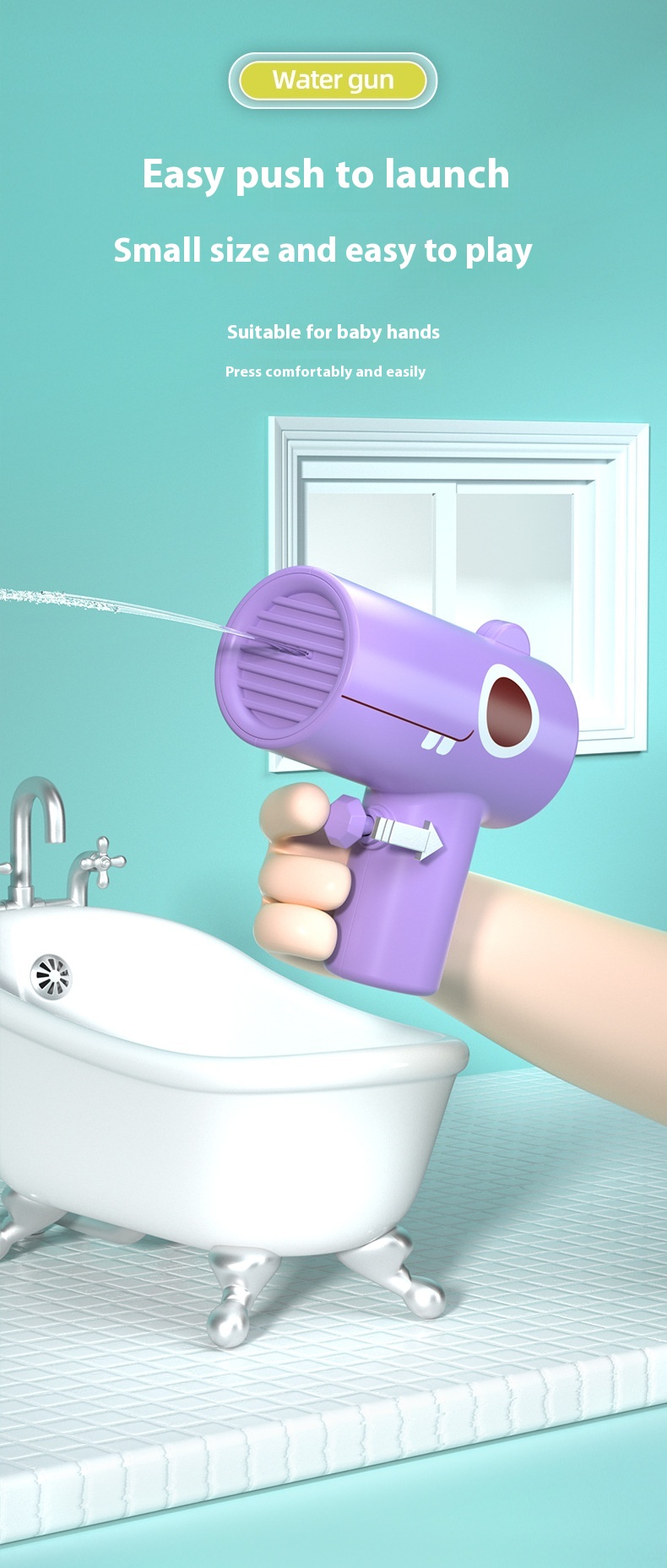 - Mechanism: Simple press action for easy water shooting