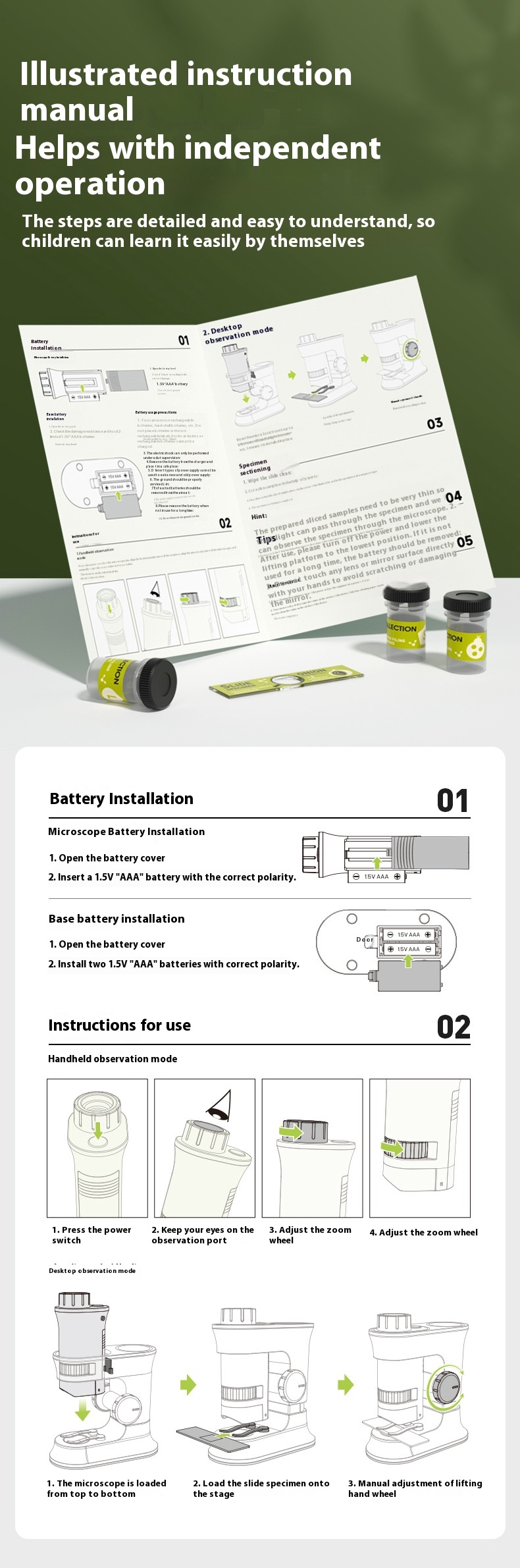- Easy to Use: User-friendly controls and an ergonomic design ensure that children can comfortably and easily use the microscope without frustration.