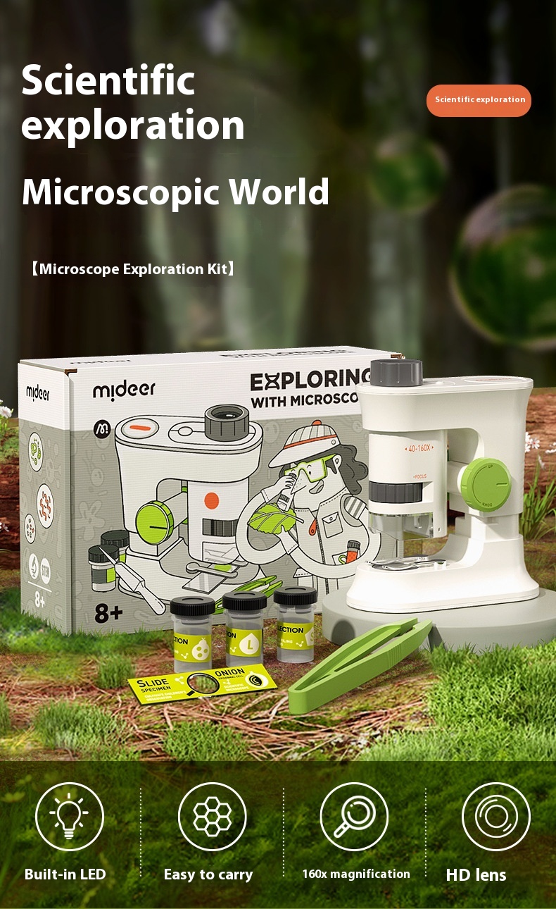 - High-Definition Imaging: Equipped with an HD lens to deliver clear and detailed magnification, allowing children to closely examine specimens and experience the microscopic world like never before.