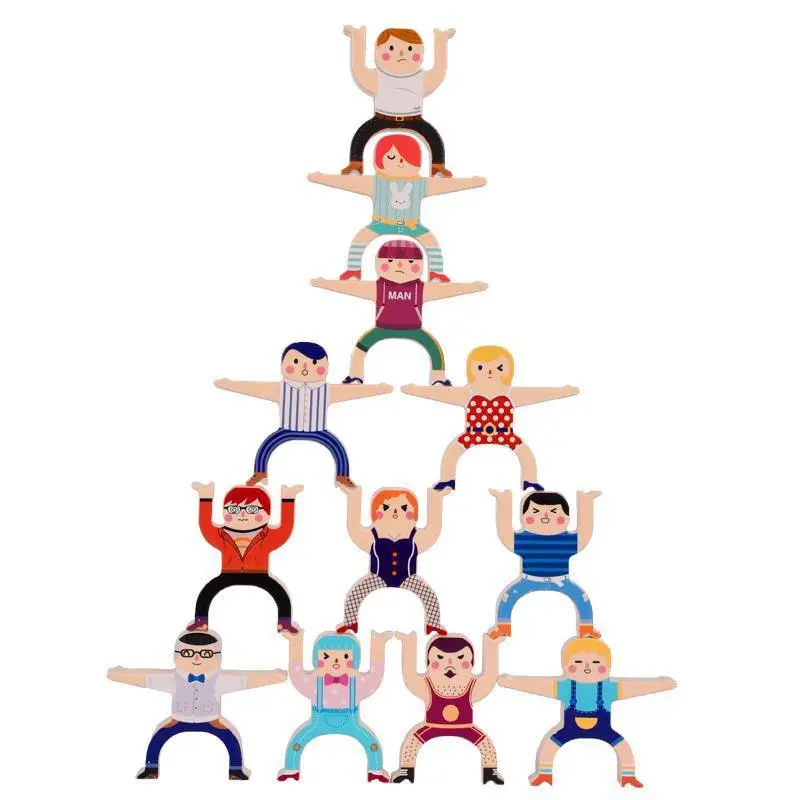 Children's Hercules balance stacks of high blocks