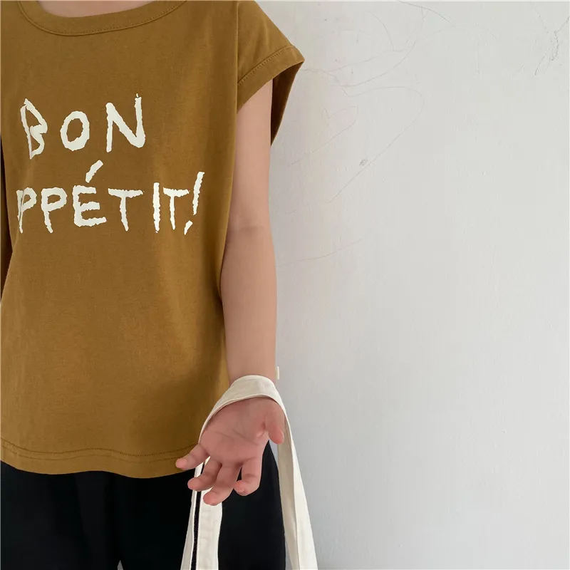 Children's Letter Printed Sleeveless Vest For Boys And Girls Loose Casual Top