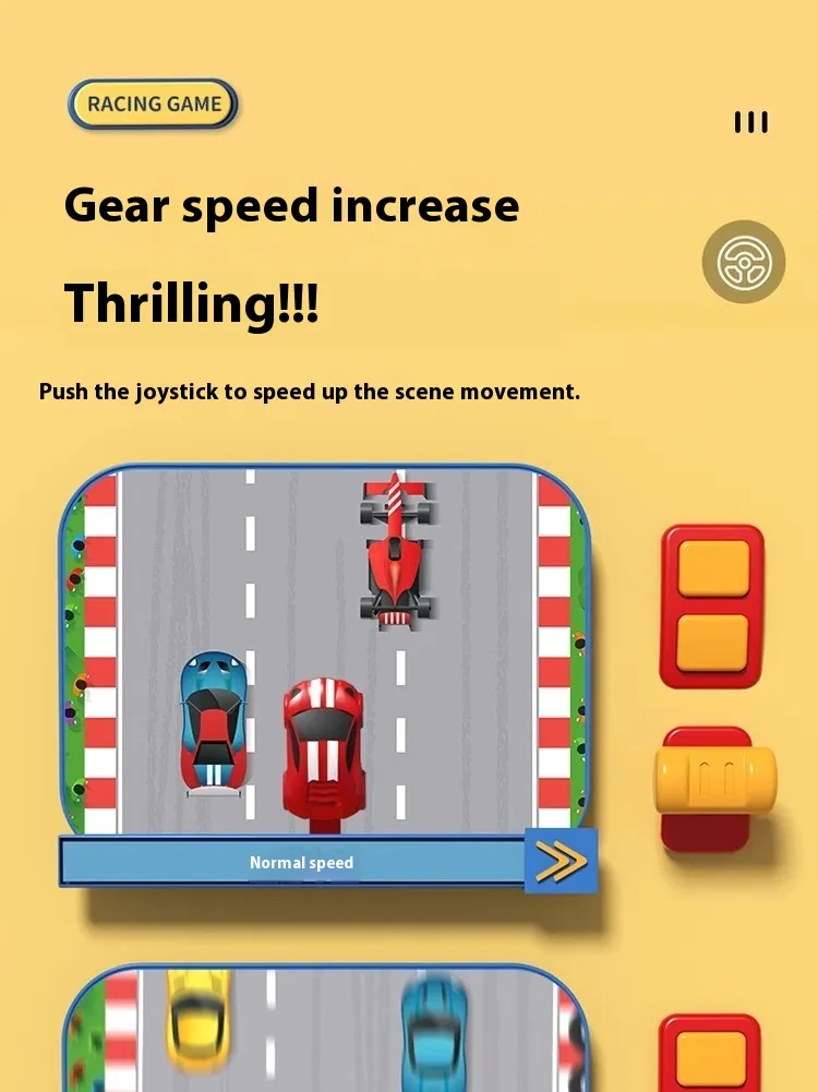 controls, allowing children to engage fully in the racing action and develop their motor skills.