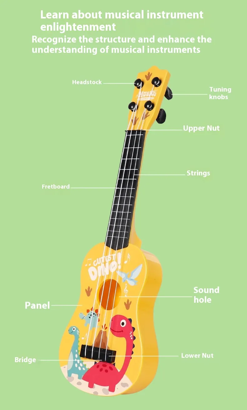 Playable Ukulele Design: Features four functional strings, allowing kids to learn basic musical techniques.