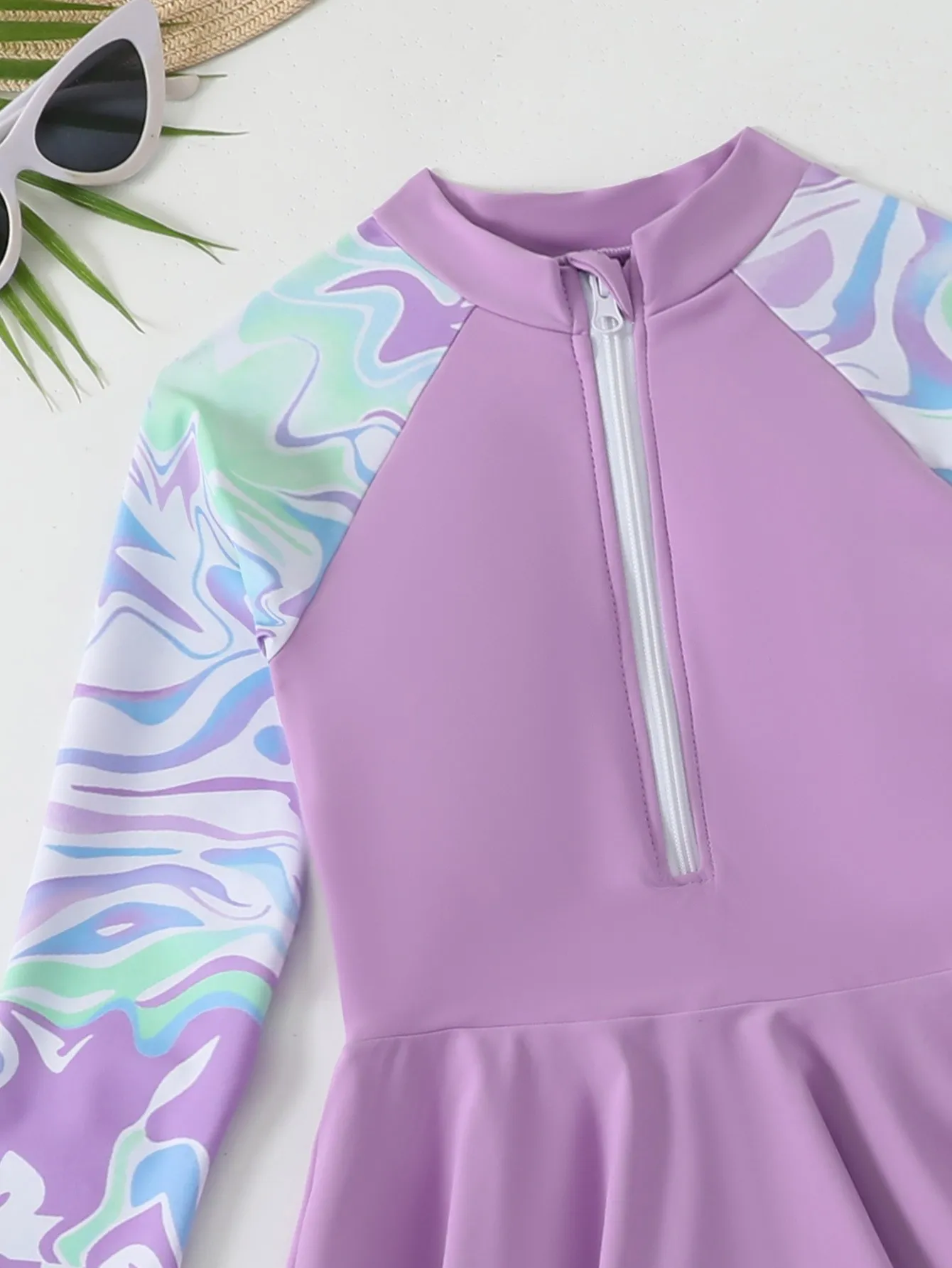 Long-Sleeve Design: The long-sleeve top provides added protection from the sun, helping to shield your child’s delicate
