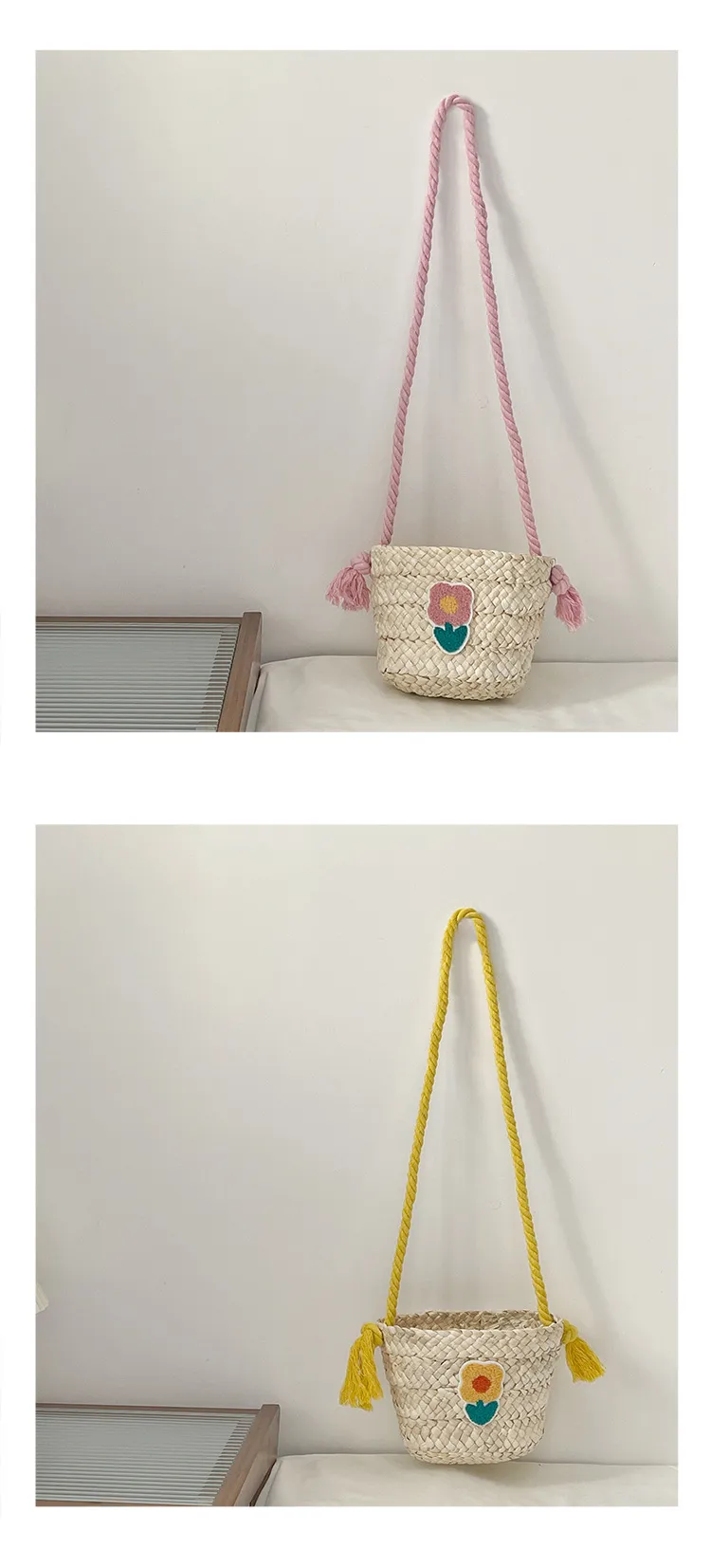 Children's Straw Handmade Knitted Messenger Bag
