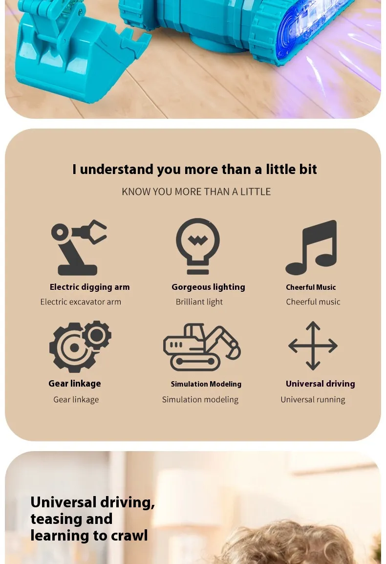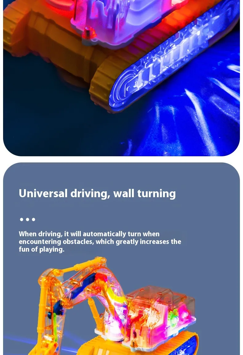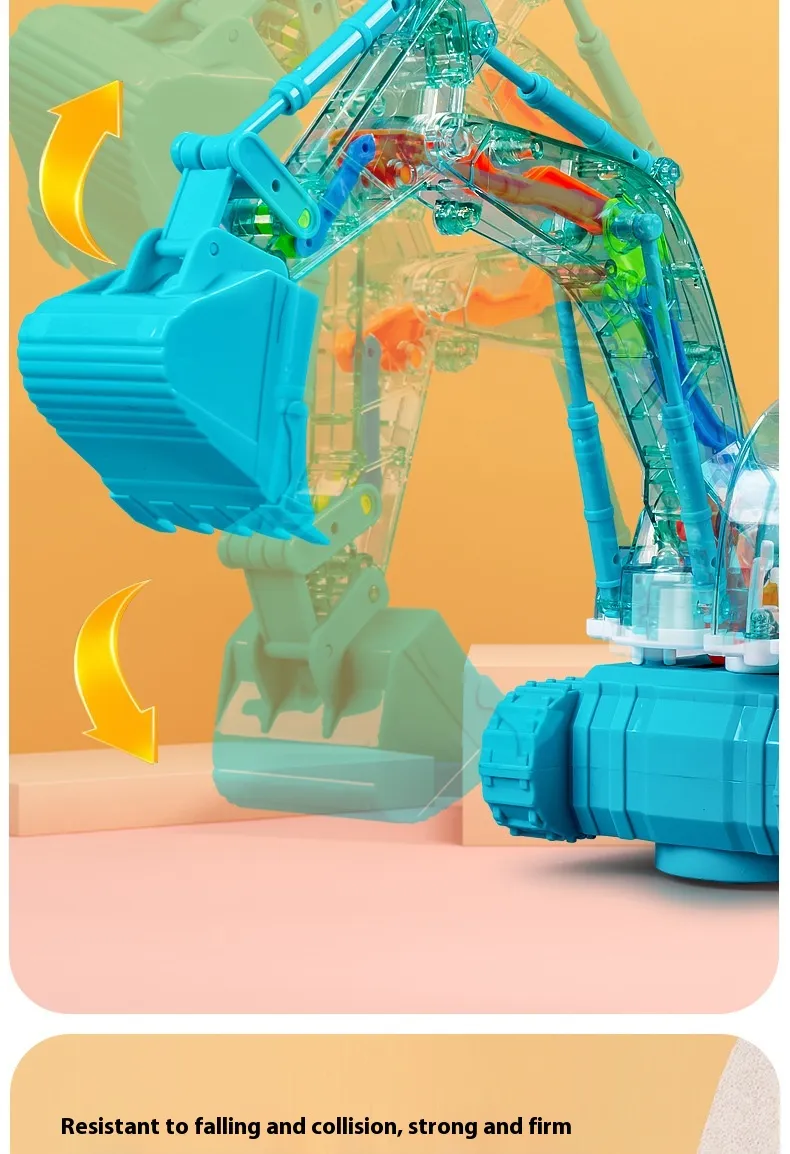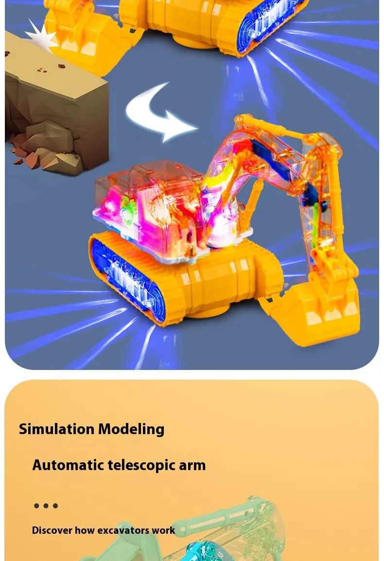 Children's Toy Transparent Mechanical Gear Excavator Movable Joint Light Toy